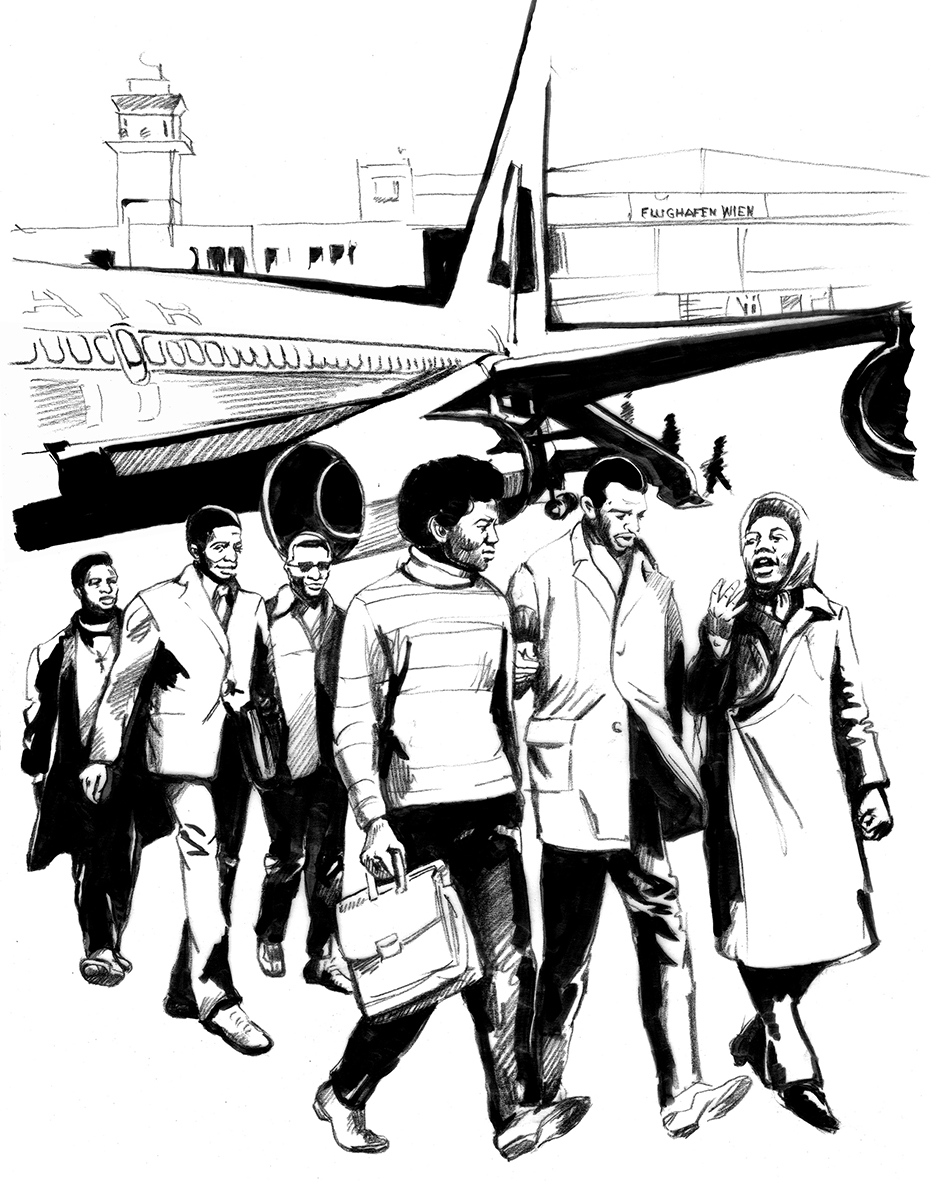 2015/16 Naija Akatarians I Nigerain Migrants in Vienna since the 1960s (mit Happy Akegbeleye, Clifford Erinmwionghae). Zeichnungen, Collagen, Installation, Archivarbeit